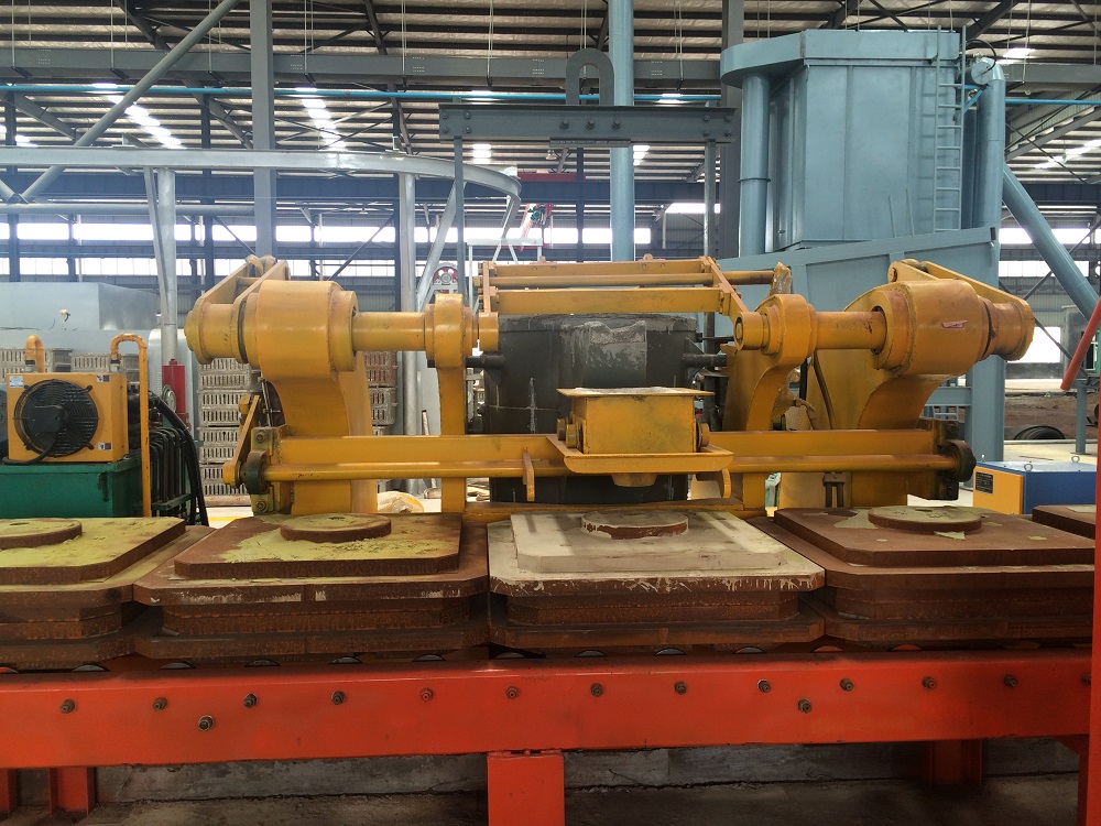 通過搖桿開關(guān)將包蓋往上掀起,通過送包小車將澆包放置底座退出澆注機,將裝滿鐵水的澆包平穩(wěn)放在底座上,確定澆包放穩(wěn)并且位置無偏移后拉動送包小車的搖桿開關(guān),將澆包送入澆注機內(nèi)。待澆包到位后蓋上包蓋,將澆注的緩沖嘴對準砂箱的澆注口即可開始澆注。